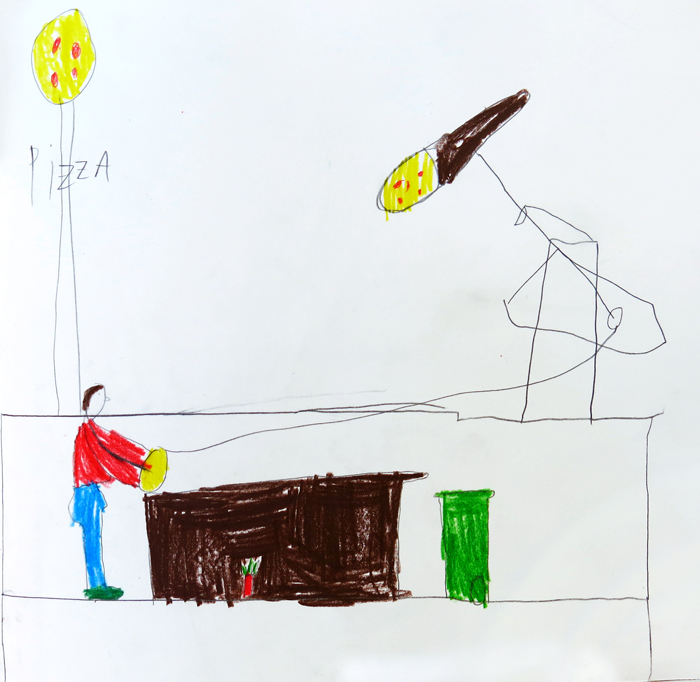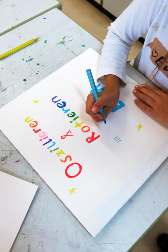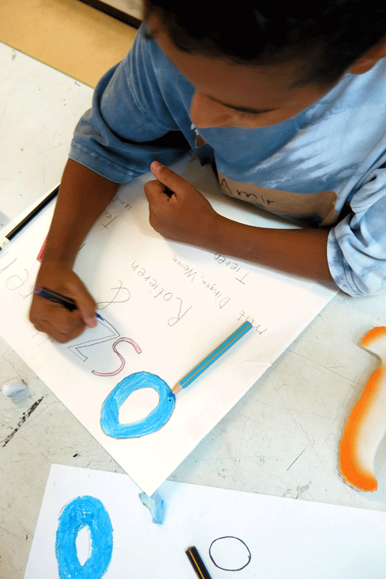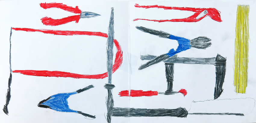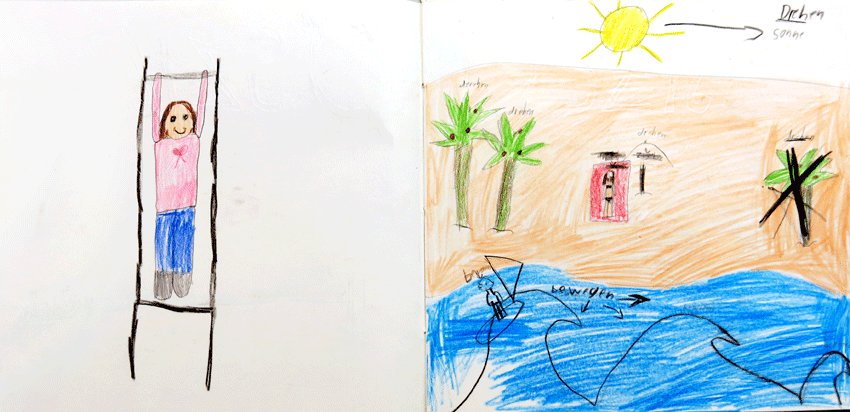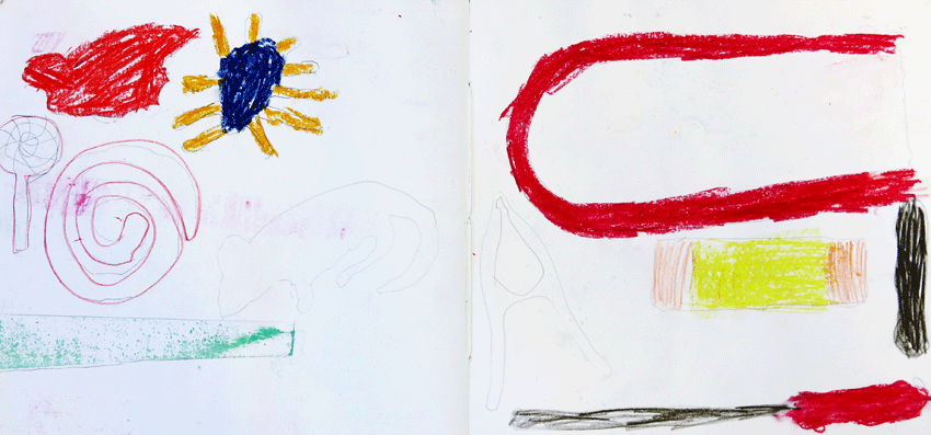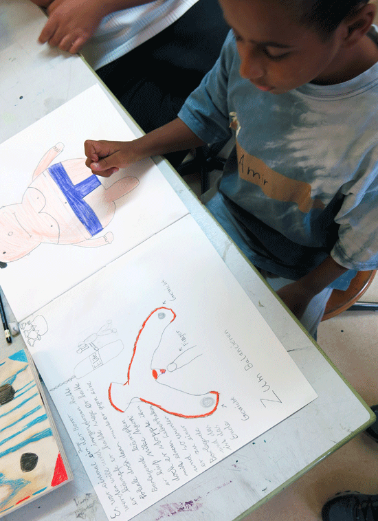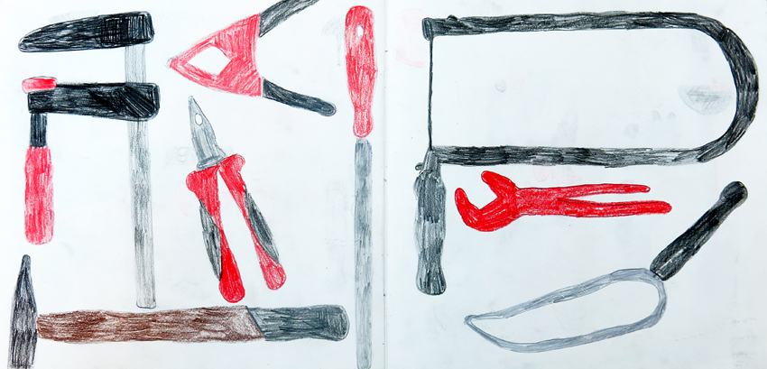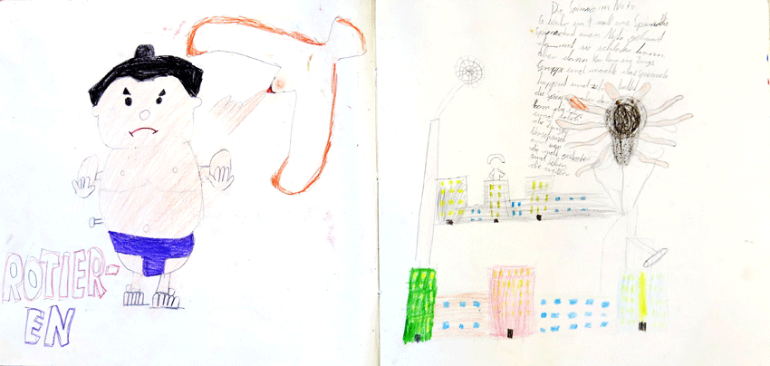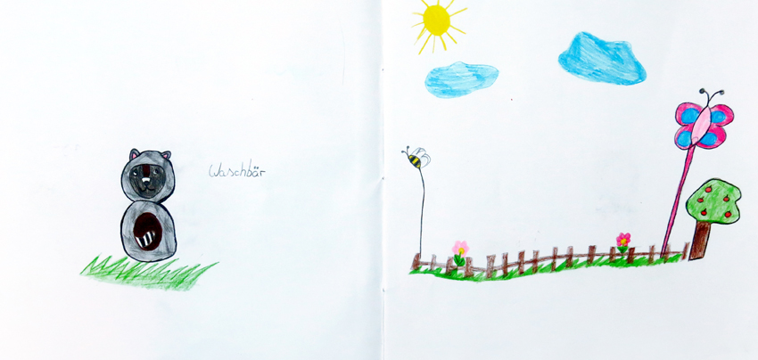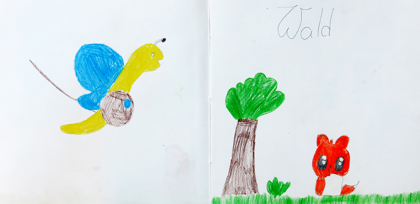 Ein großformatiges Kunst/Werkbuch für Texte, Bilder und Skizzen begleitet die praktische Arbeit der Kinder. Wir arbeiten darin täglich gemeinsam, es kann aber auch jederzeit frei gearbeitet werden. Hier werden Entwürfe gemacht, Ergebnisse und Ideen festgehalten, man kann sich auch mal zurückziehen und vertiefen, um in Ruhe zu zeichnen, wenn sonst an anderer Stelle gewartet werden muss.