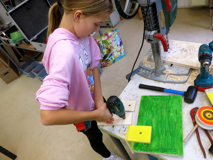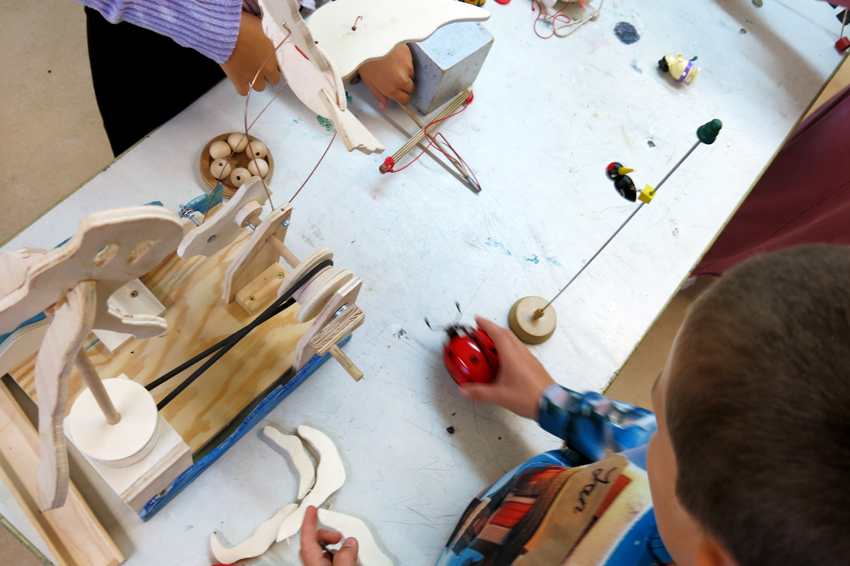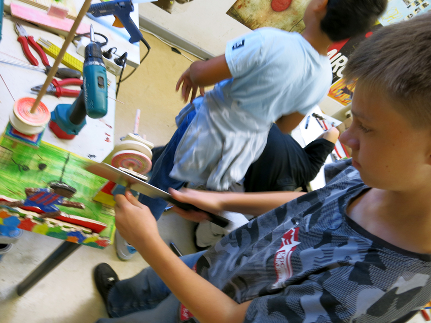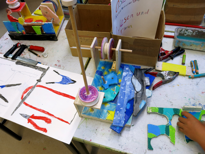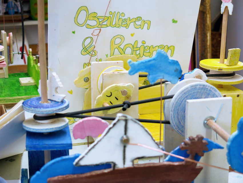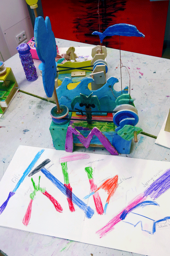 Die Kinder lernen die Mechanik begreifen, bekommen einen Physik-Crashkurs und viel viel Praxis im Umgang mit Werkzeugen und Farbe. Gefördert werden: Experimentierfreude, handwerkliches Geschick, sprachlicher Ausdruck, logisches Denken, poetische Offenheit, Sinn für Komik und Absurdität.