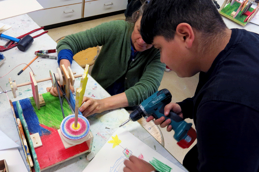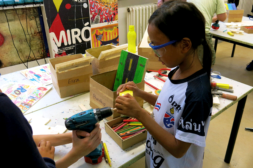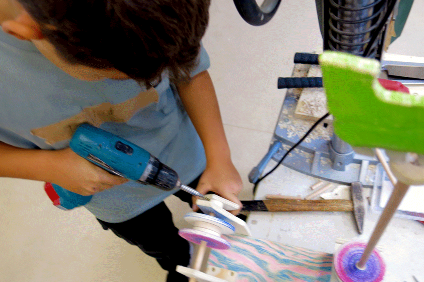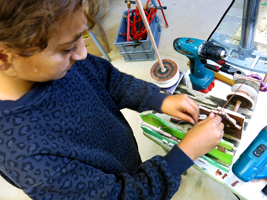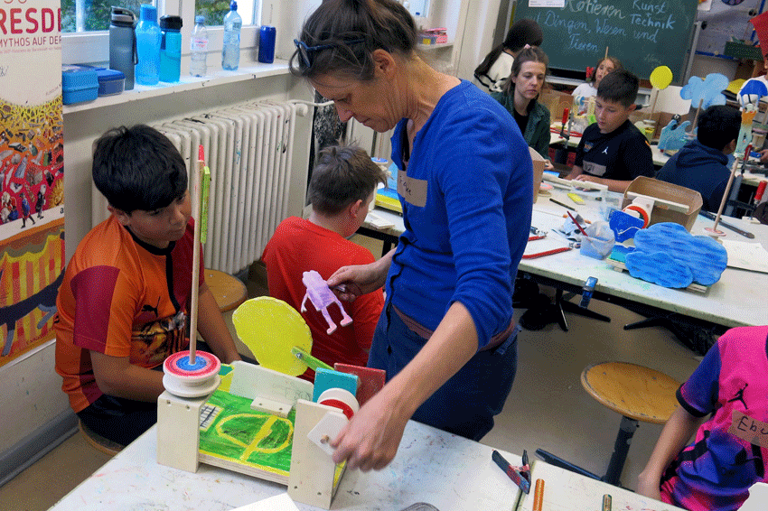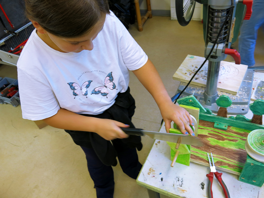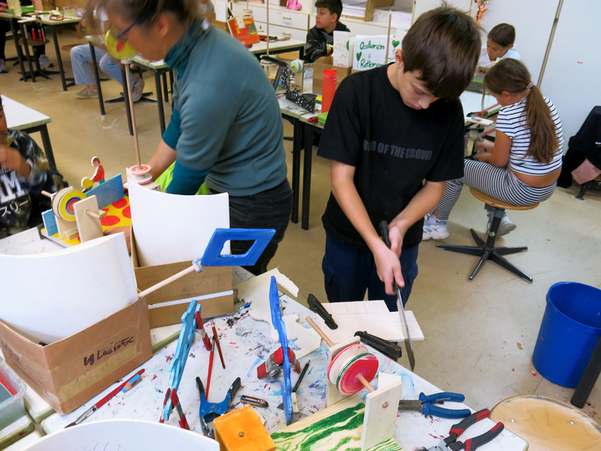 Die Kinder lernen die Mechanik begreifen, bekommen einen Physik-Crashkurs und viel viel Praxis im Umgang mit Werkzeugen und Farbe. Gefördert werden: Experimentierfreude, handwerkliches Geschick, sprachlicher Ausdruck, logisches Denken, poetische Offenheit, Sinn für Komik und Absurdität.