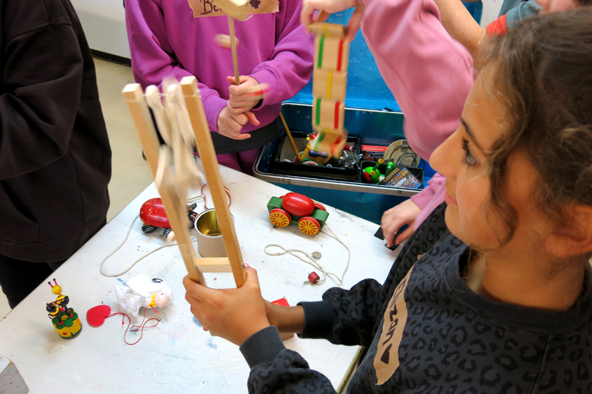 Zuerst analysieren wir einfache Bewegungsmuster anhand von mitgebrachtem beweglichem Spielzeug. Wir reflektieren die einfachen Bewegungsgesetze: wie funktionieren Kurbel, Wippe, Pendel, Kreisel... was bedeuten Antrieb, Reibung, Fliehkraft, Hebel, Stabilität? Was ist ein Exzenter? Dann nutzen wir die Theorie für die Praxis.