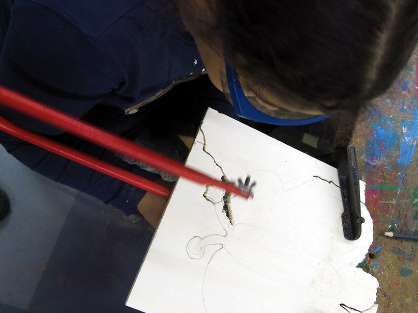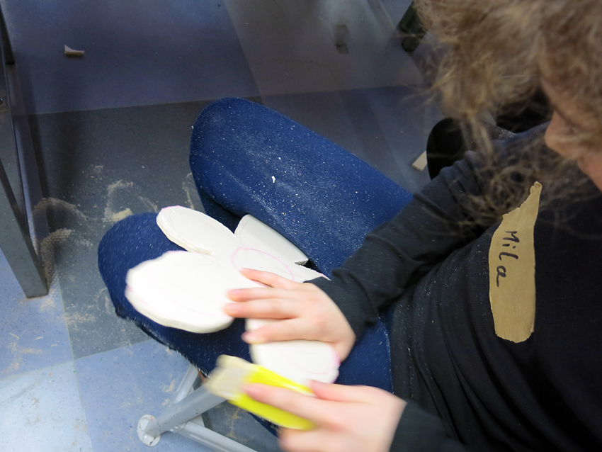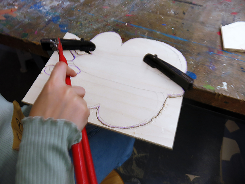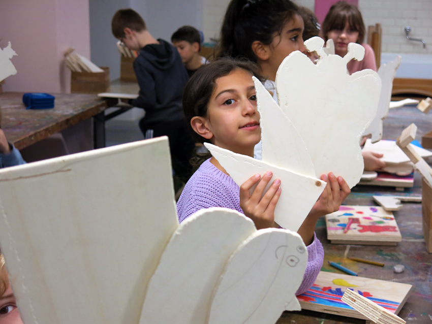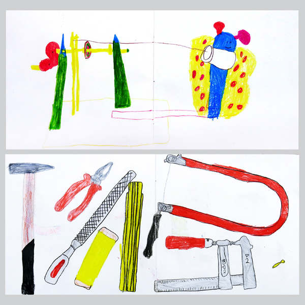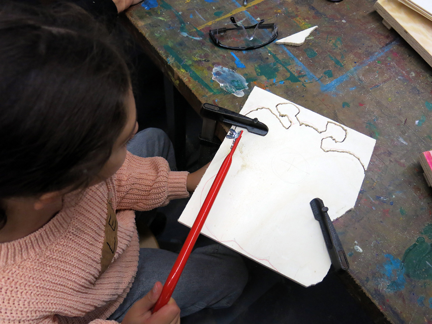 Die Schüler*innen lernen mit Werkzeugen und Handmaschinen umzugehen. Sie bearbeiten Holz, sägen, schrauben, bohren, malen, sie beobachten, konstruieren, korrigieren und erfinden. Sie lernen einiges über Physik: Die Funktion von Hebel, Exzenter, Reibung, Schwerkraft… Mit dem Physik-Crashkurs beginnen wir die Projektwoche, wir zeigen mechanische Spielzeuge und die Kinder sollen es spielerisch erkunden.
