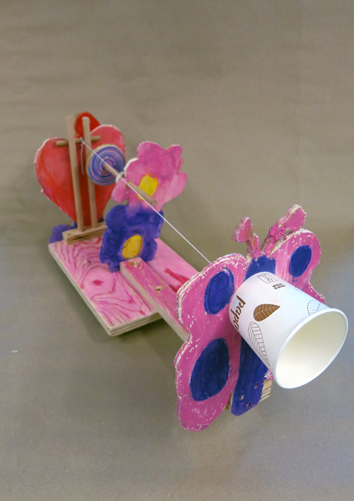 In 5 Tagen, zu jeweils 6 Stunden entwickeln und bauen die Kinder einen mechani-schen, experimentellen Spielapparat.