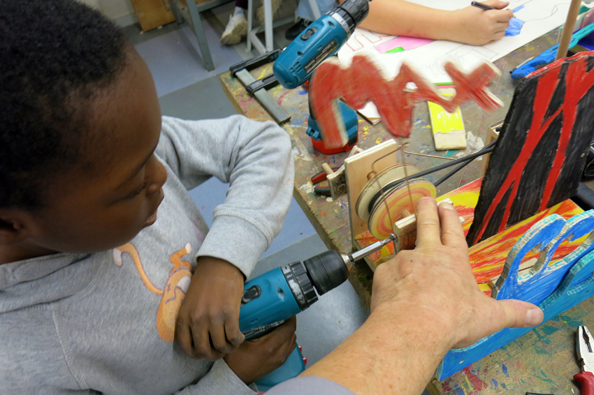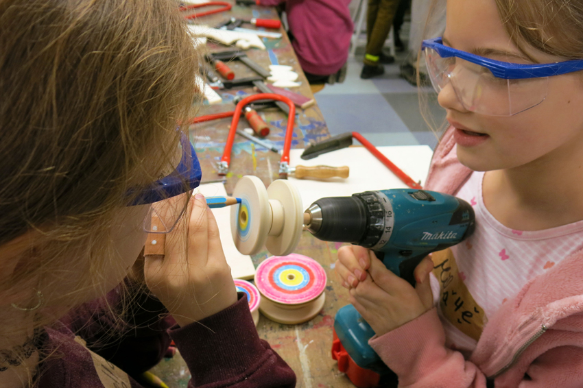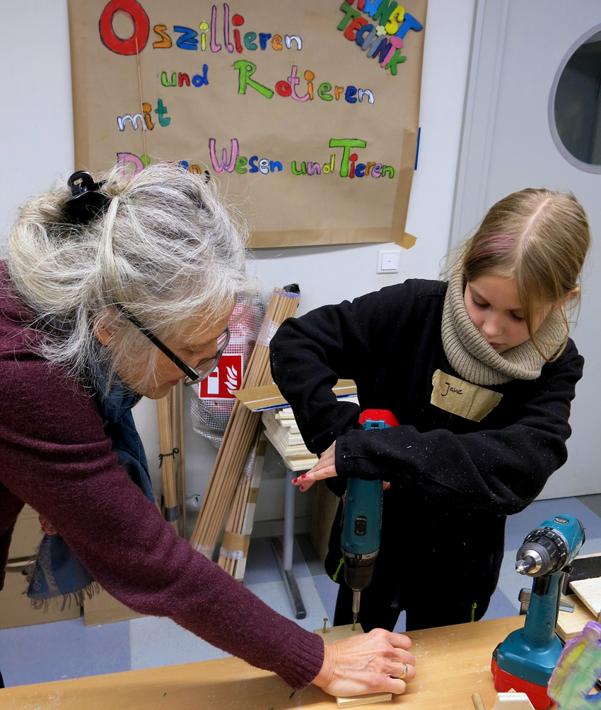 Die Kinder lernen die Mechanik begreifen, bekommen einen Physik-Crashkurs und viel viel Praxis im Umgang mit Werkzeugen und Farbe. Gefördert werden: Experimentierfreude, handwerkliches Geschick, sprachlicher Ausdruck, logisches Denken, poetische Offenheit, Sinn für Komik und Absurdität.