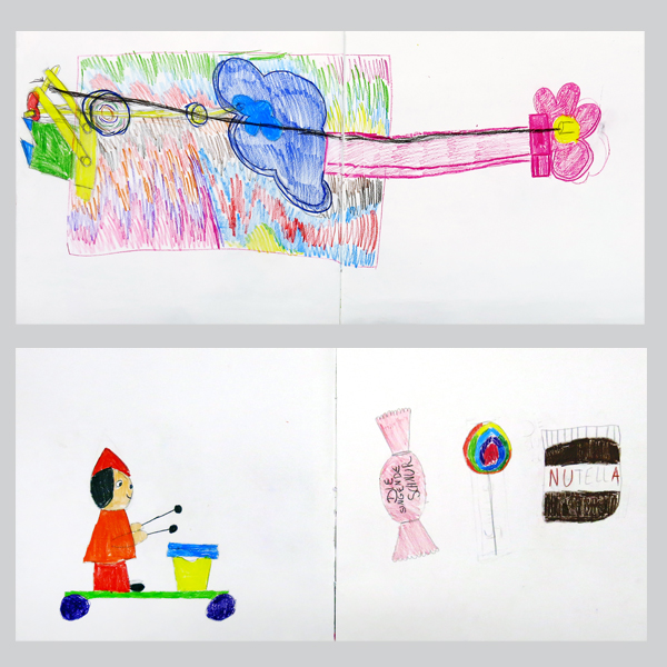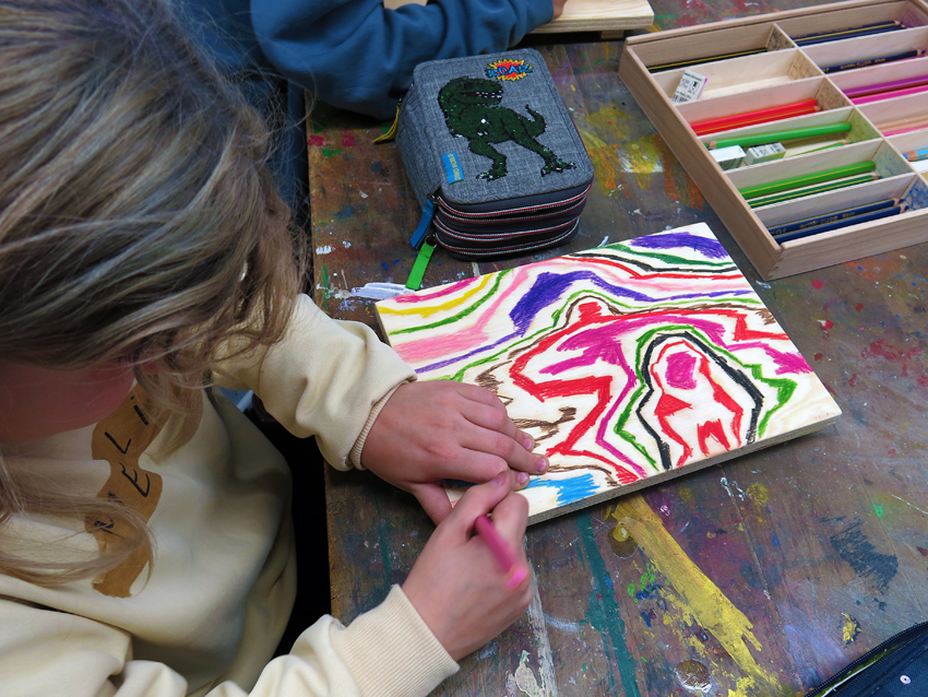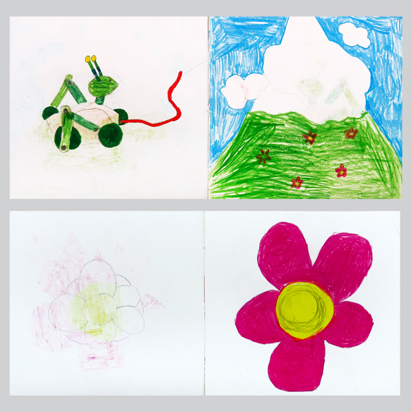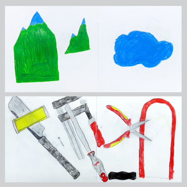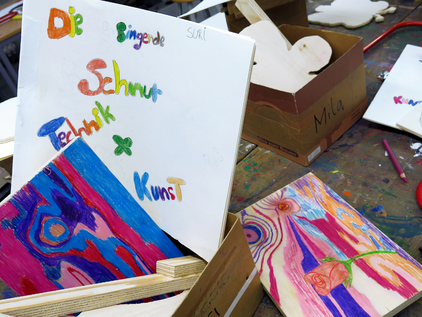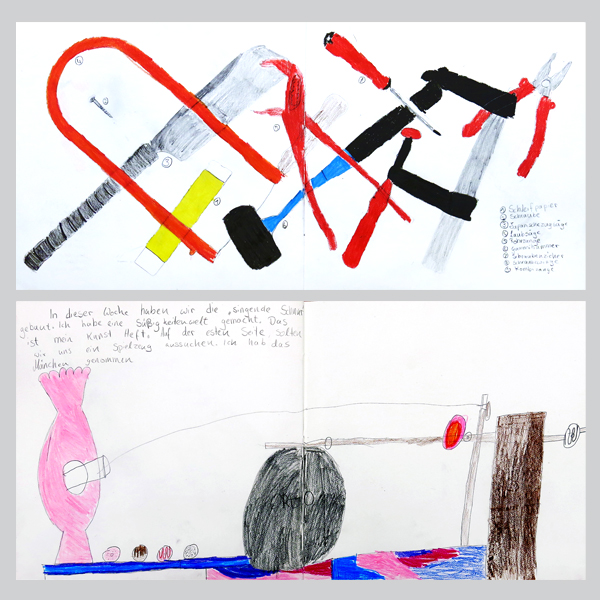 Jedes Kind führt parallel ein großformatiges Kunst/Werkbuch für technische Skizzen, gestalterische Entwürfe, Bilder, Fotos und vielleicht Geschichten.