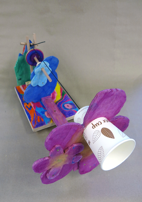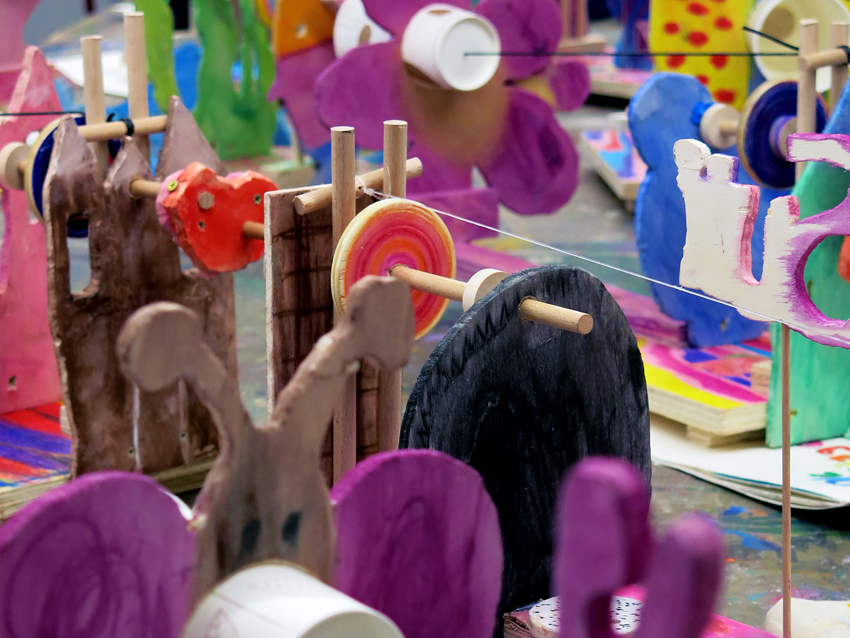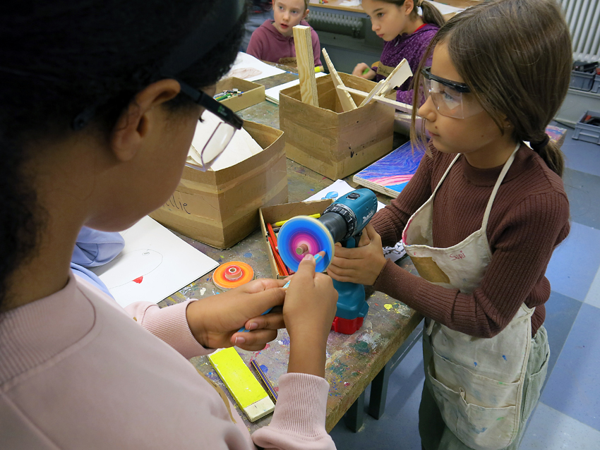 Während einer Präsentation am Ende der Woche stellen die Schüler*innen ihre Werke vor, andere Klassen werden eingeladen zum Schauen und Kurbeln. Anschließend nehmen die Schüler*Innen ihr Kunstobjekt mit nach Hause.