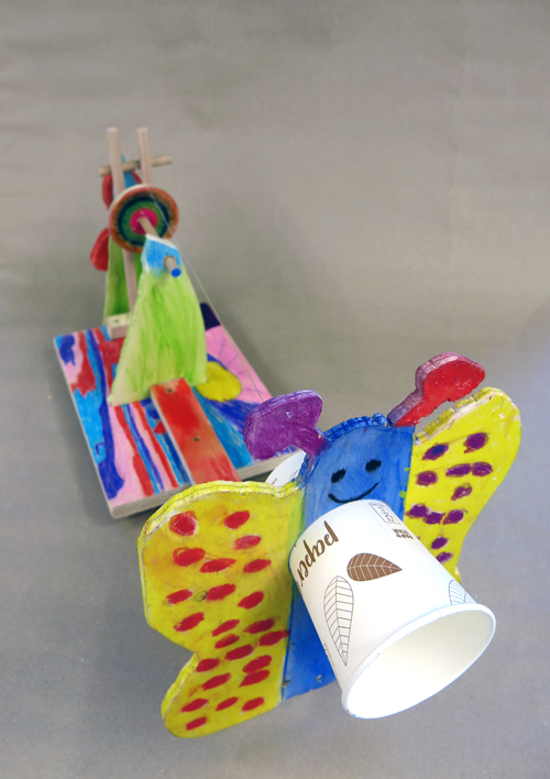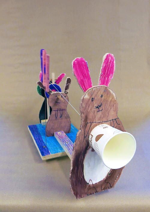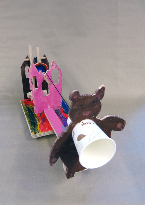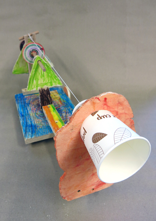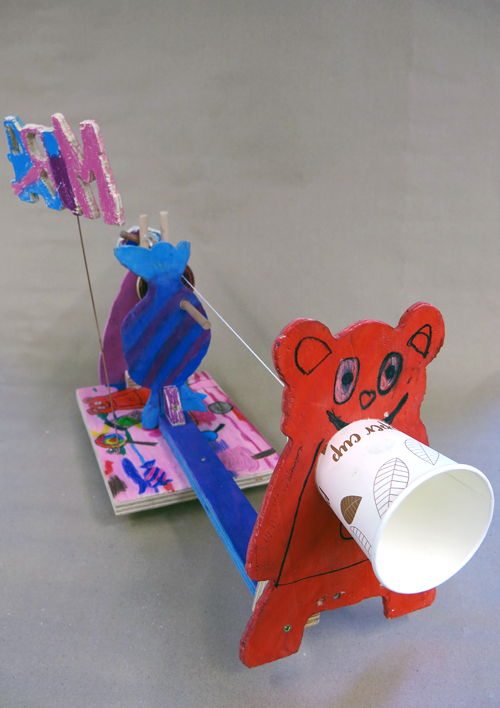 In 5 Tagen, zu jeweils 6 Stunden entwickeln und bauen die Kinder einen mechani-schen, experimentellen Spielapparat.